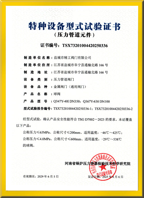 球閥試驗證書